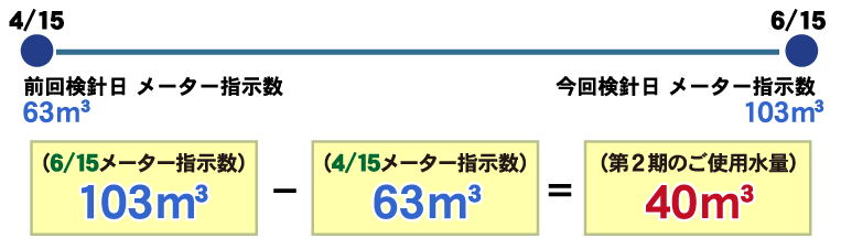 水道メーターの検針は、2か月ごとの定例検針日に行います。